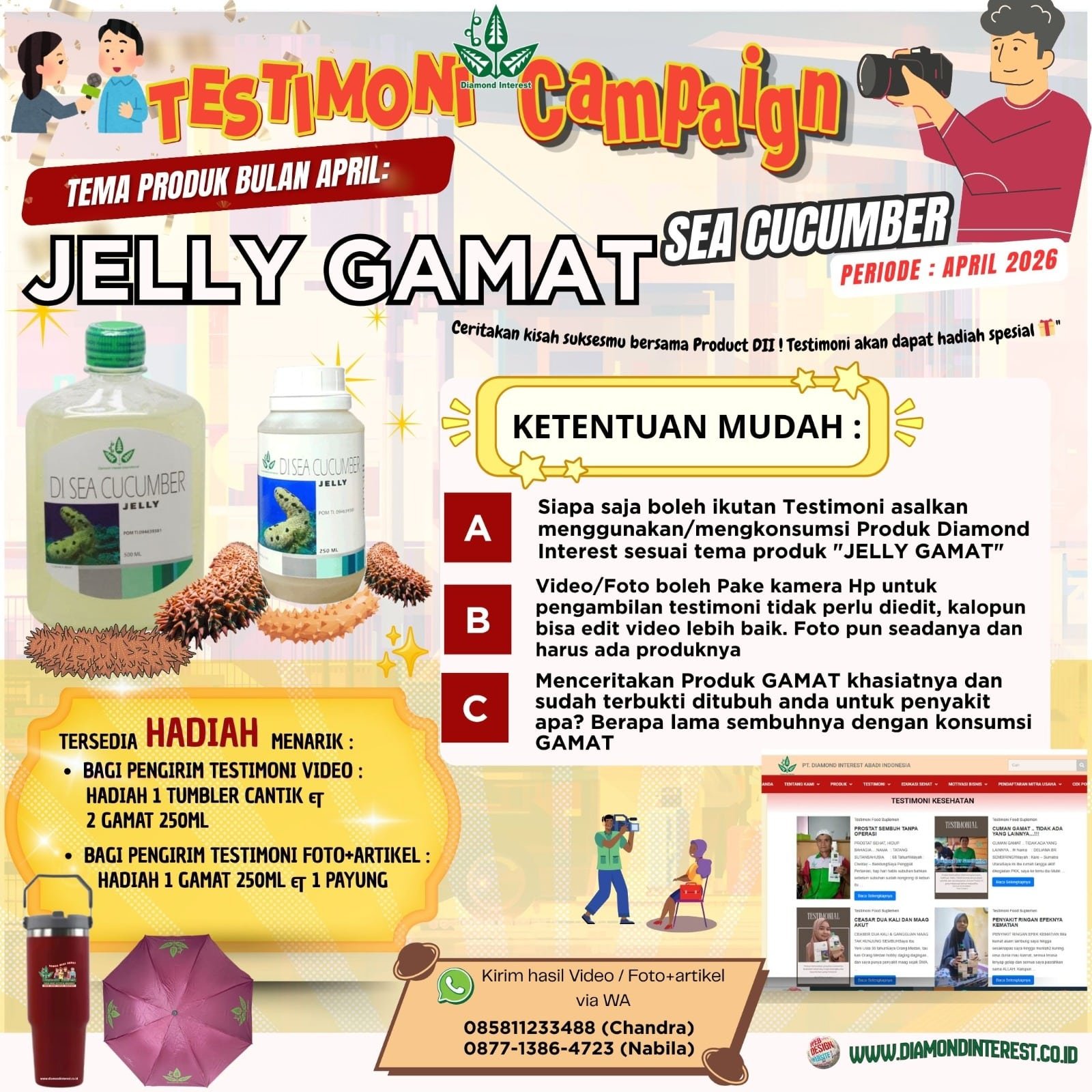 – Kirim Video dapat hadiah 1 Tumbler, 1 Payung, 2 btl Gamat 250 ml
